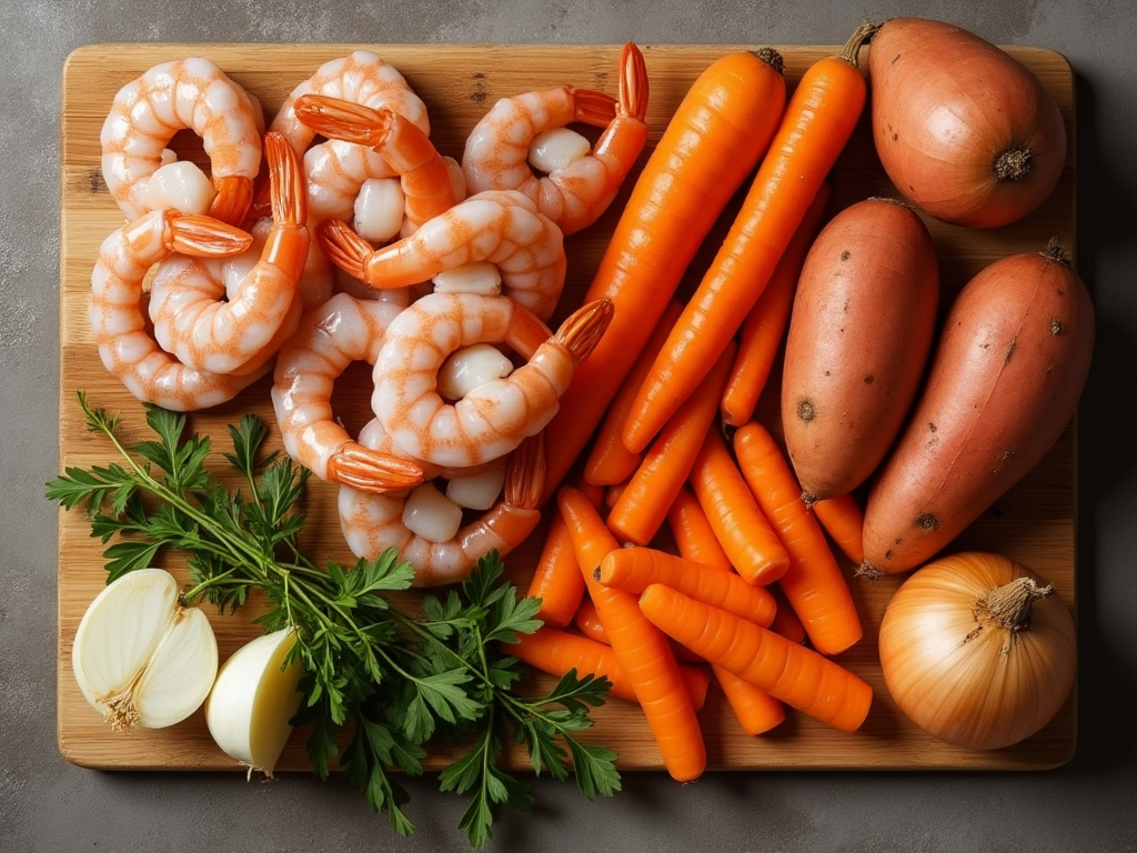 Start by prepping all of your ingredients. Peel and cube the sweet potatoes, slice the carrots, chop the onions, and mince the garlic. If you’re using frozen shrimp, thaw them under cold running water. - Sauté the Aromatics